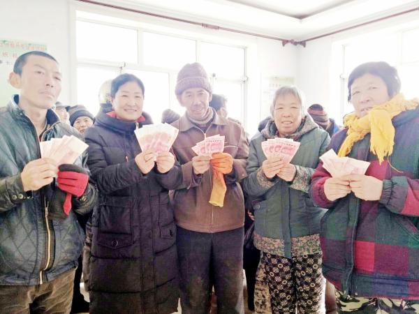 近日,在三宝乡红石砬村的北票市秋丰土地股份专业合作社办公室内,人头攒动,贫困户们喜领分红款。这是该合作社第一次年终效益分红。