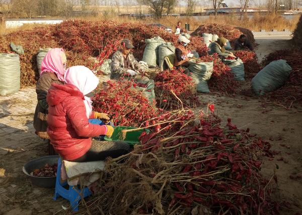 初冬时节,寒意渐浓。当记者走进台吉营乡,看到的却是一派热火朝天的景象,红彤彤的辣椒堆满了房前屋后,椒农们在忙着采摘辣椒。